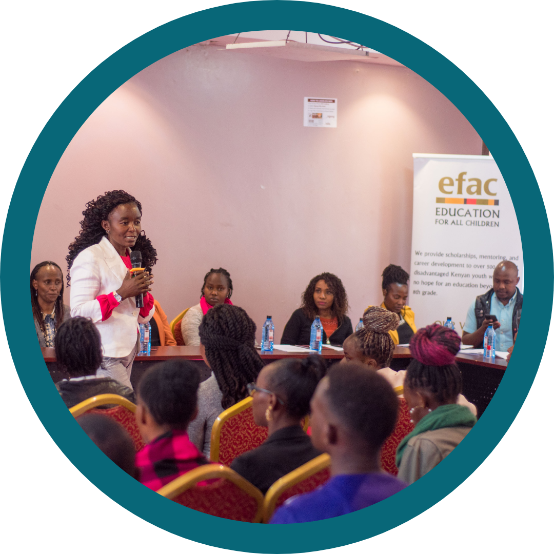 Professional mentors are a key part of the EFAC ecosystem as we support young adults as they enter the workforce. Volunteer mentors are always needed in a variety of fields in regions across Kenya!